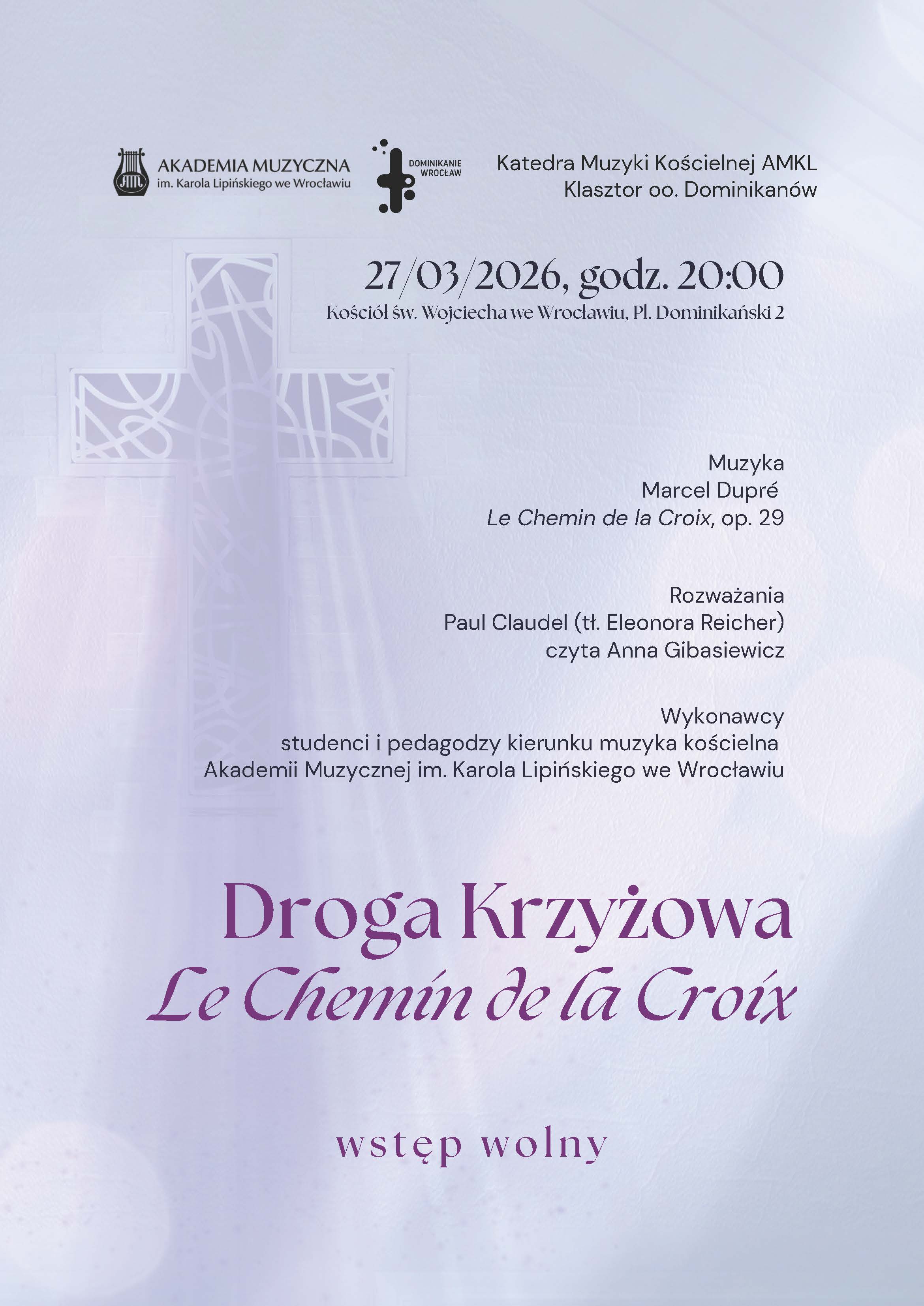 Organiści – studenci i pedagodzy kierunku Muzyka Kościelna wrocławskiej Akademii Muzycznej zaprezentują wyjątkowe dzieło francuskiego kompozytora Marcela Dupré – Drogę Krzyżową op. 29.