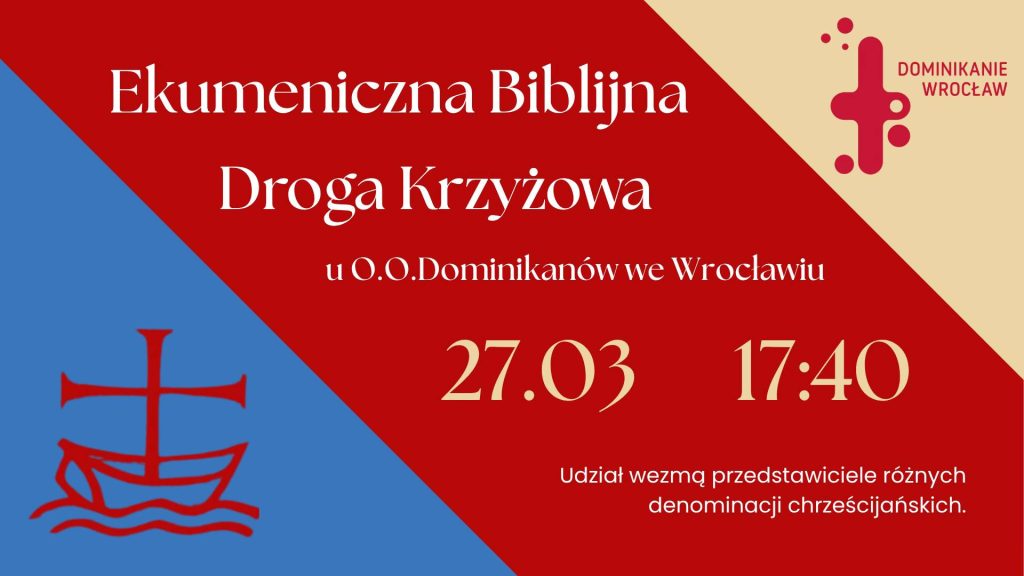 Zapraszamy wraz z fundacją Proarte na Ekumeniczną Biblijną Drogę Krzyżową, która odbędzie się w ten piątek, 27.03.2026, o godzinie 17:45.