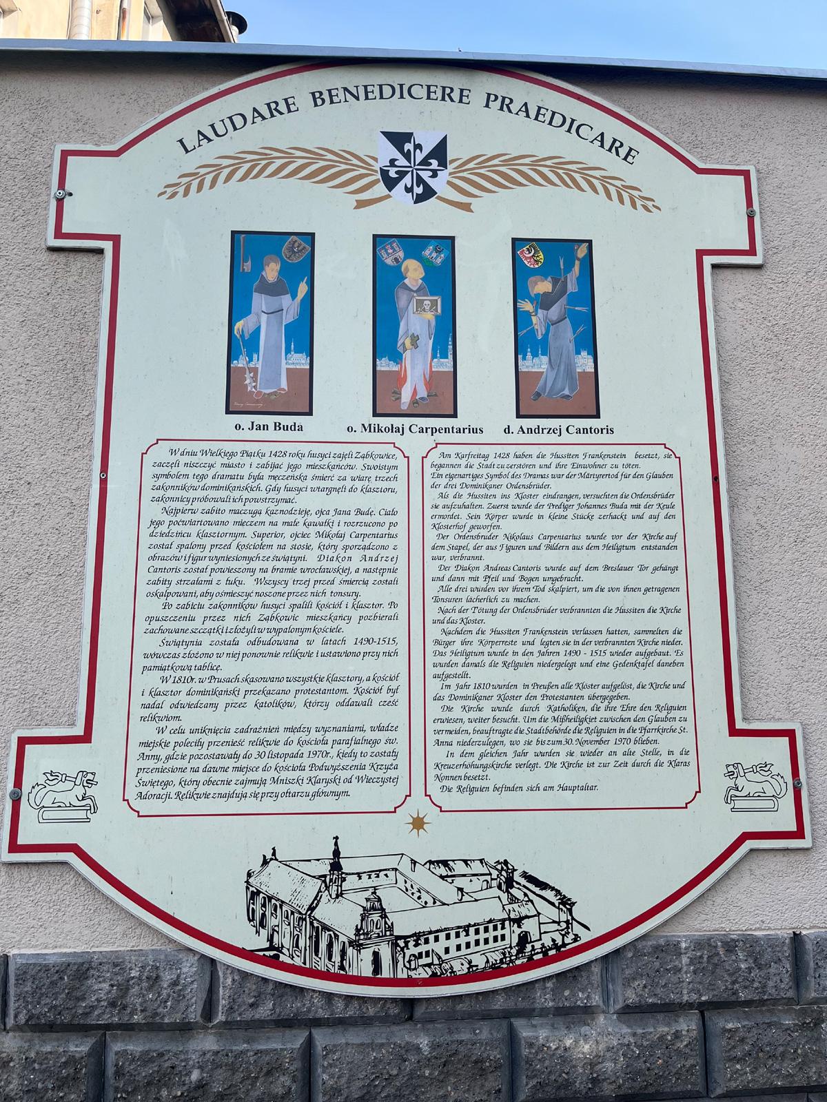 Warto przypomnieć, że męczennicy – ząbkowiccy dominikanie – o. Jan Buda OP, o. Mikołaj Carpentarius OP oraz diakon Andrzej Cantoris OP zostali zamordowani 2 kwietnia 1428 r. przez husytów.